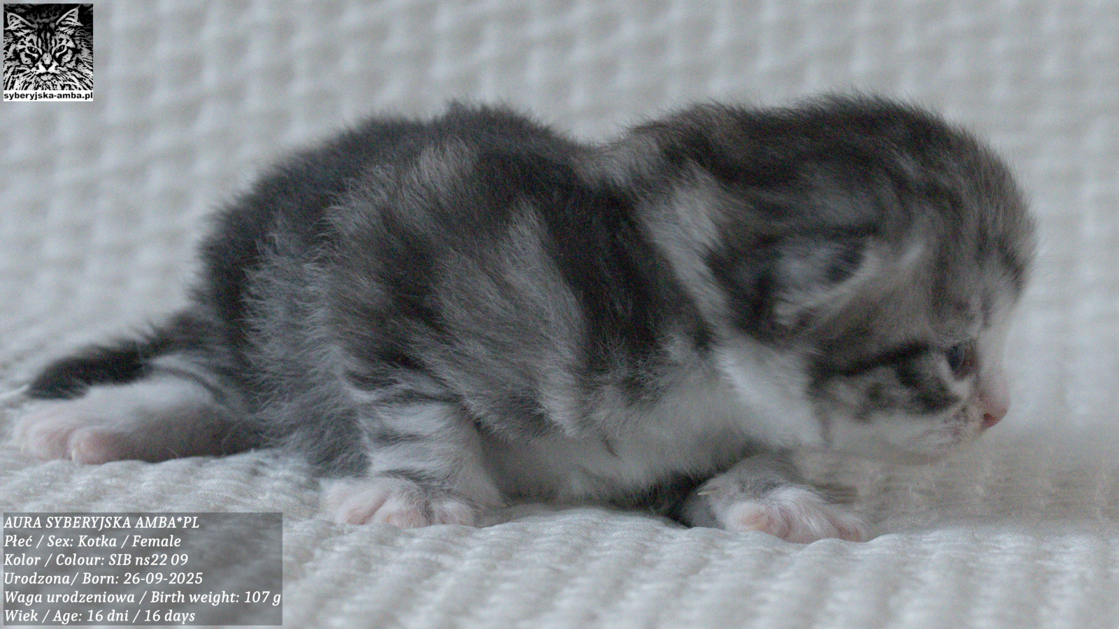Rodzice: BARSA S.B. SYBERYJSKA AMBA*PL i CH PAT SYBERYJSKA AMBA*PL